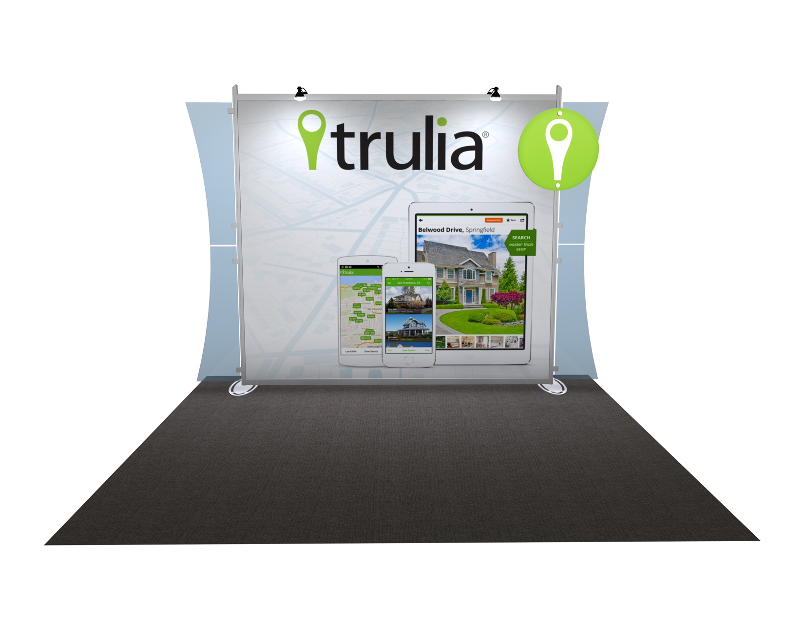 At trade shows, inline or linear trade show displays are generally arranged in a straight line alongside other exhibits. With this in mind, it’s especially important that they’re bold and eye-catching. Common inline display sizes include 10x20, 10x30 or larger.